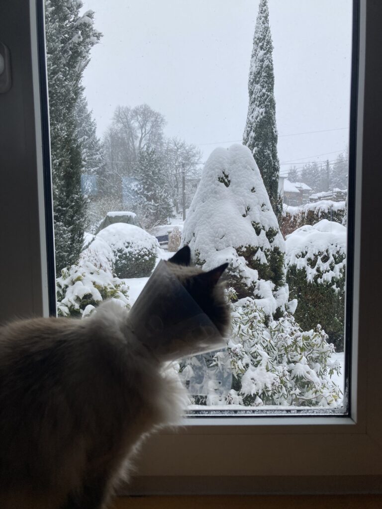 Tak jsme to totálně uvěznění sněhem. Ještě včera odpoledne jsem věřila v to, že dnes ráno pojedeme na plavání, ale dnešní noc mě utvrdila v tom, že mám raději zůstat doma. Sněží a sněží a sněží a nepřestává. Napadlo od včerejška tak půl metru. Auto pod sněhem, na silnici závěje a první rolba kolem nás projela až po půl jedenácté. Nakonec za mě rozhodlo i moje tělo, že nemám nikam jezdit. Řekla jsem si, že to nebudu zbytečně přemáhat a že mám dát na všechny varovné signály. Tak jsme zůstali doma a čekáme na tatínka, spojku s civilizací. Snad se mu podaří dorazit vlakem a následně pěšky. Snad ten vlak pojede. Myslím stále na broučky, teď jsme ječetli… jak to s nimi zle dopadlo.. a spali a spali, dobře se jim spalo… a víckrát se už neprobudili a na jaře vyrostlo na stráni dvanáct chudobek.